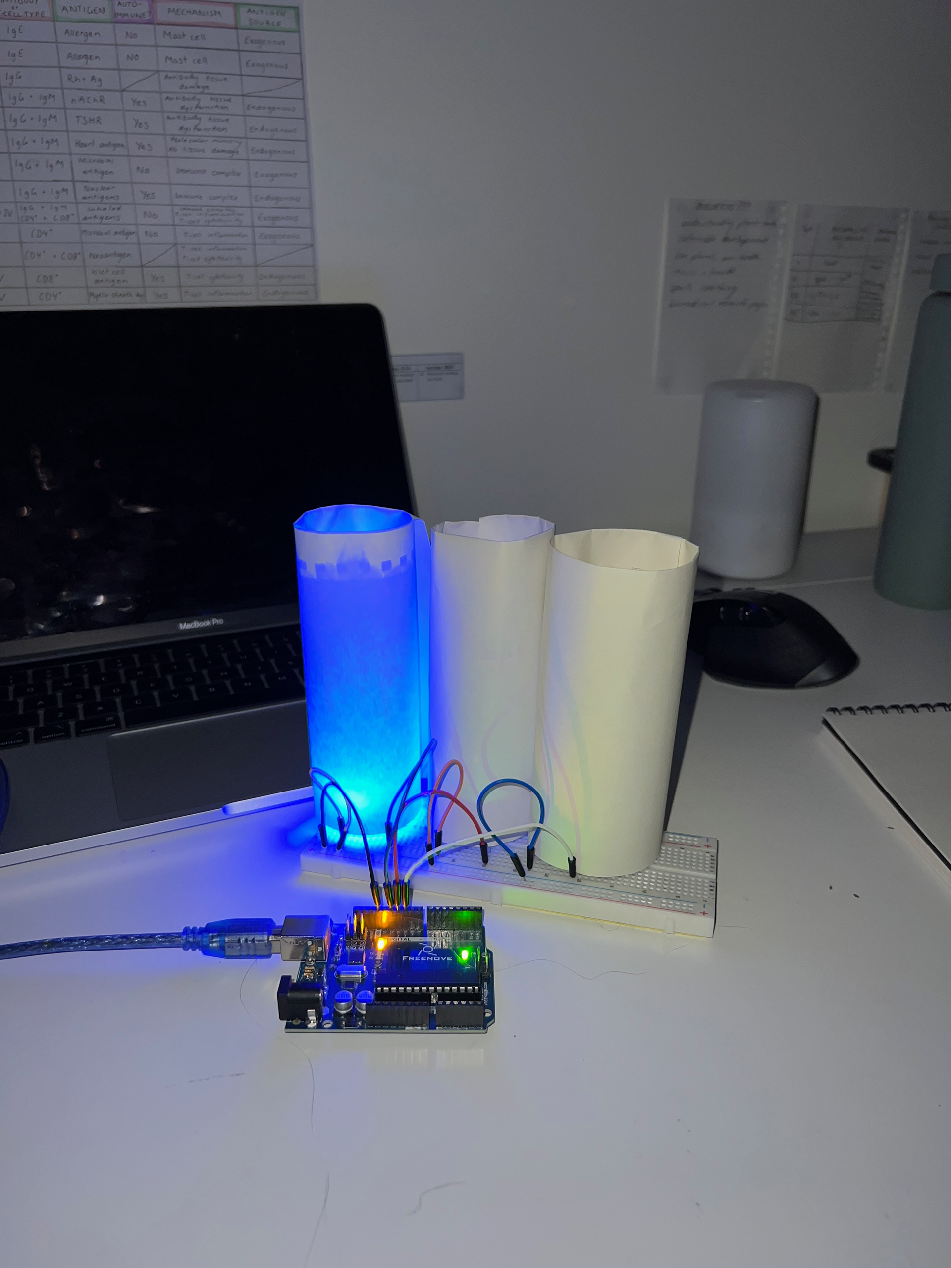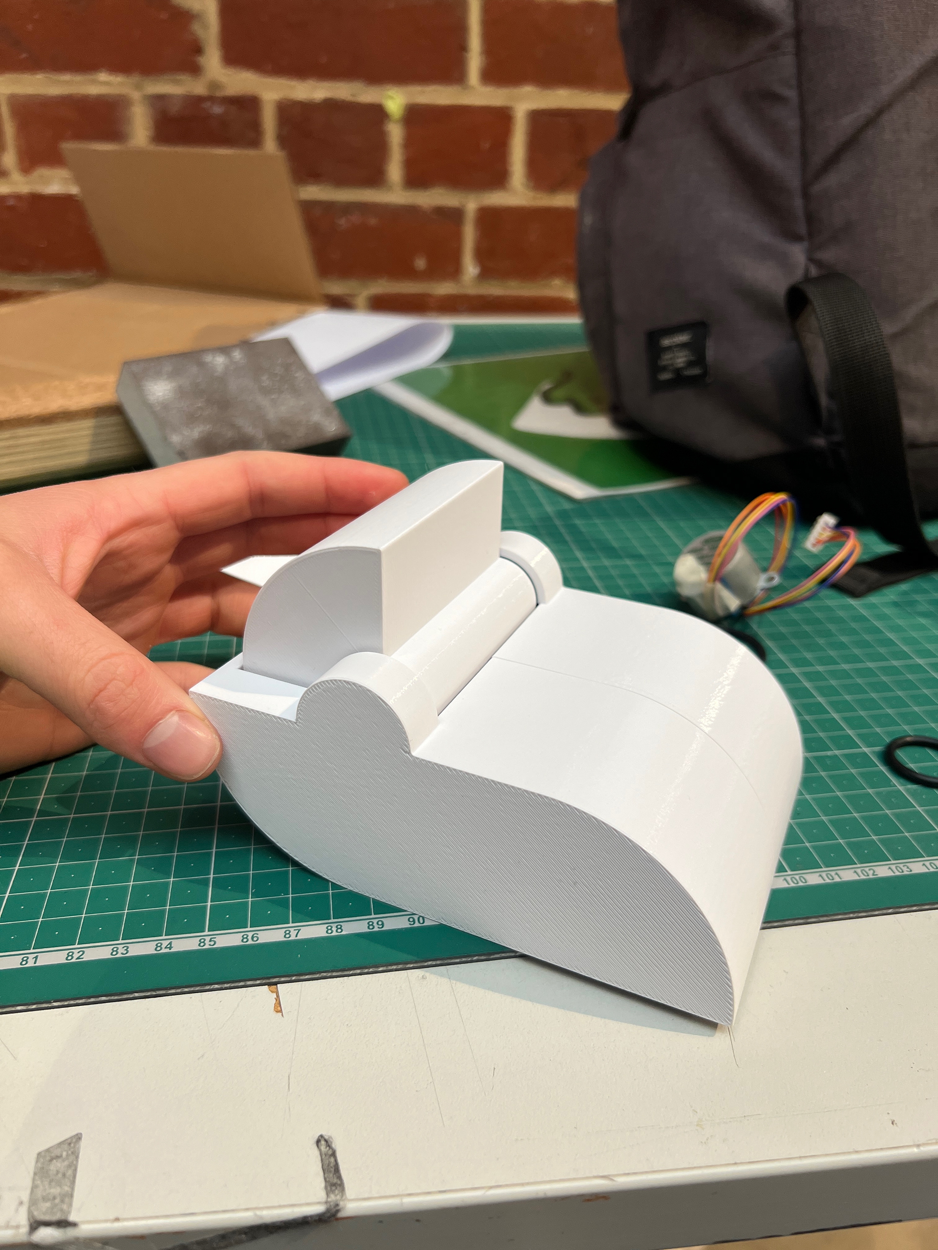 Throughout this project, I engaged with a variety of processes including CAD (Fusion360), 3D printing, laser cutting, coding (Arduino IDE), electronics and soldering, and more. I really enjoyed the challenge of balancing the form with complex internal components and function, and look forward to doing more work like this in the future.