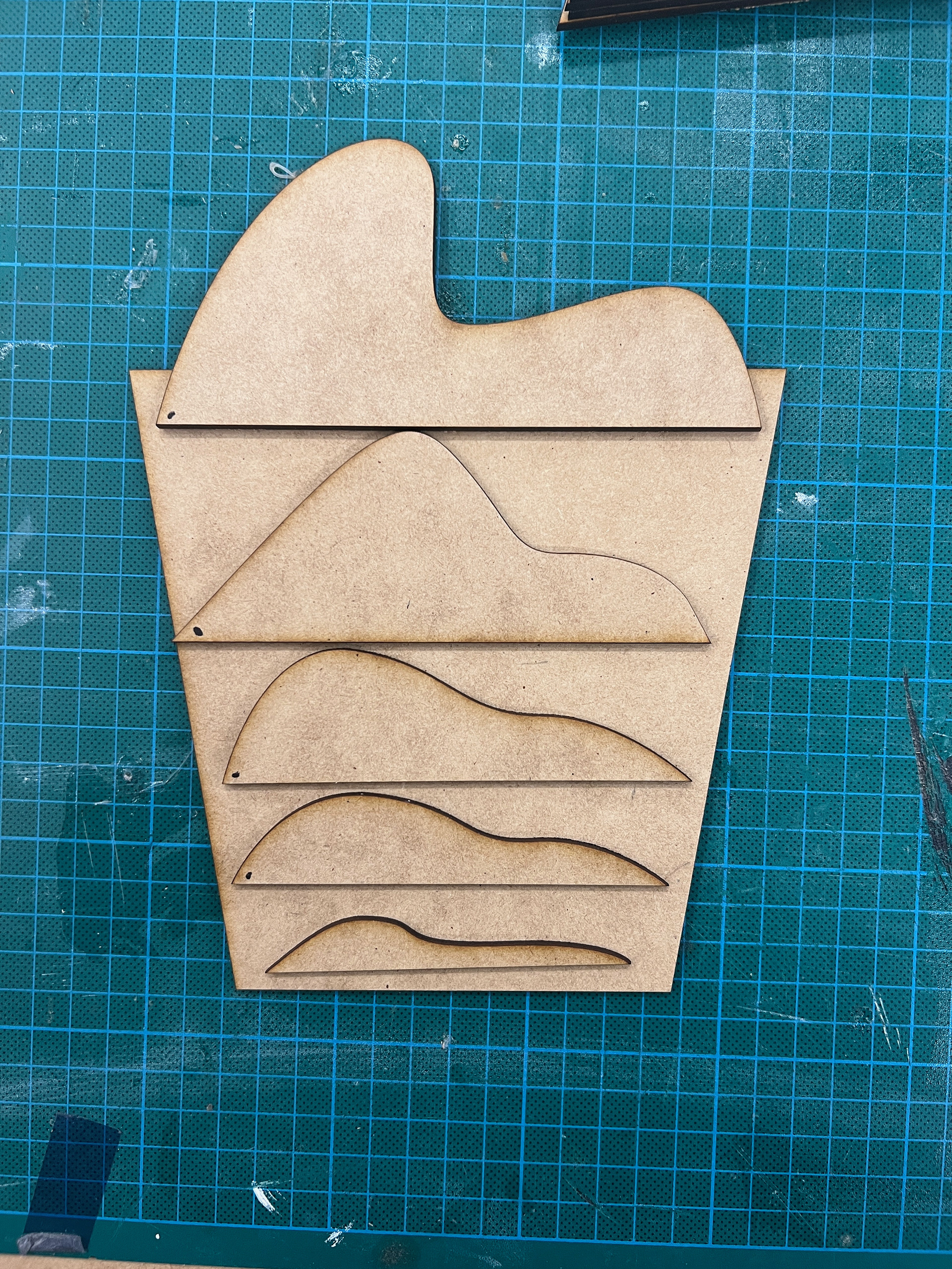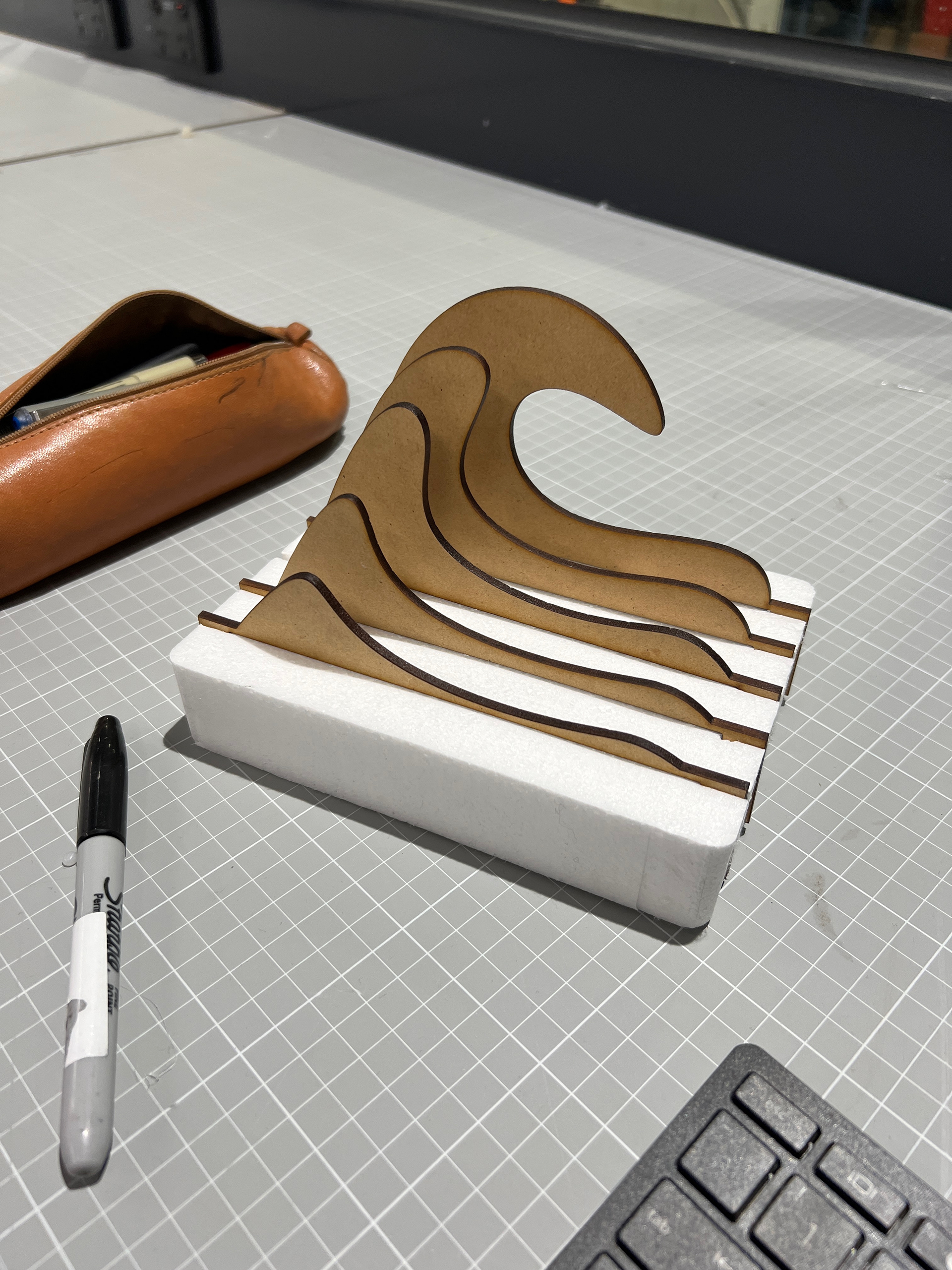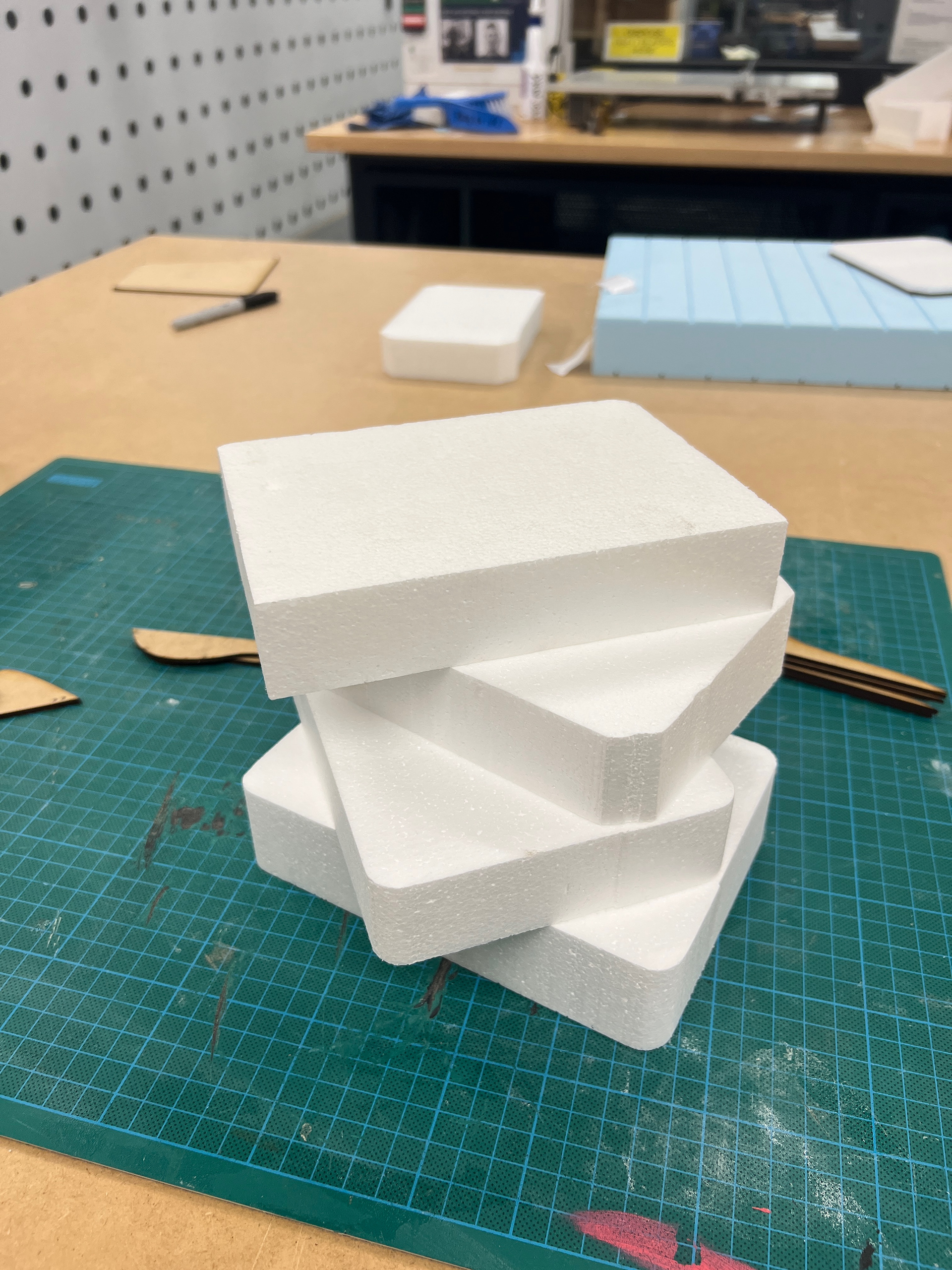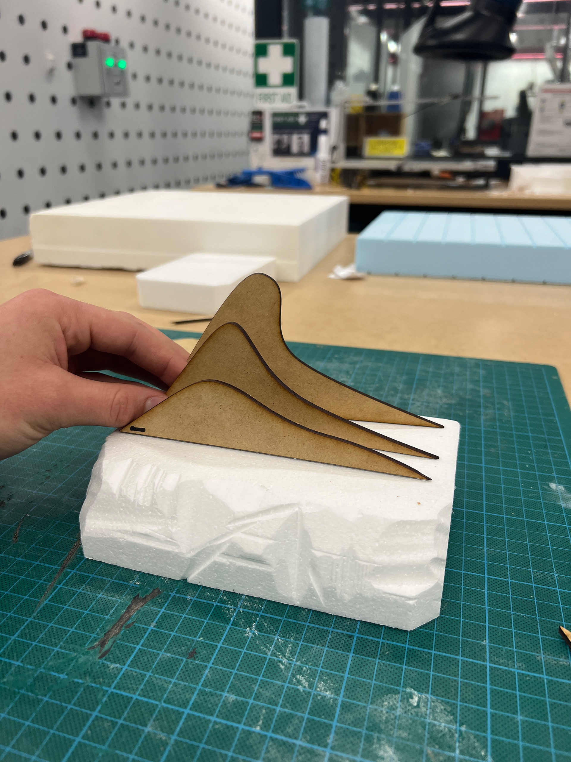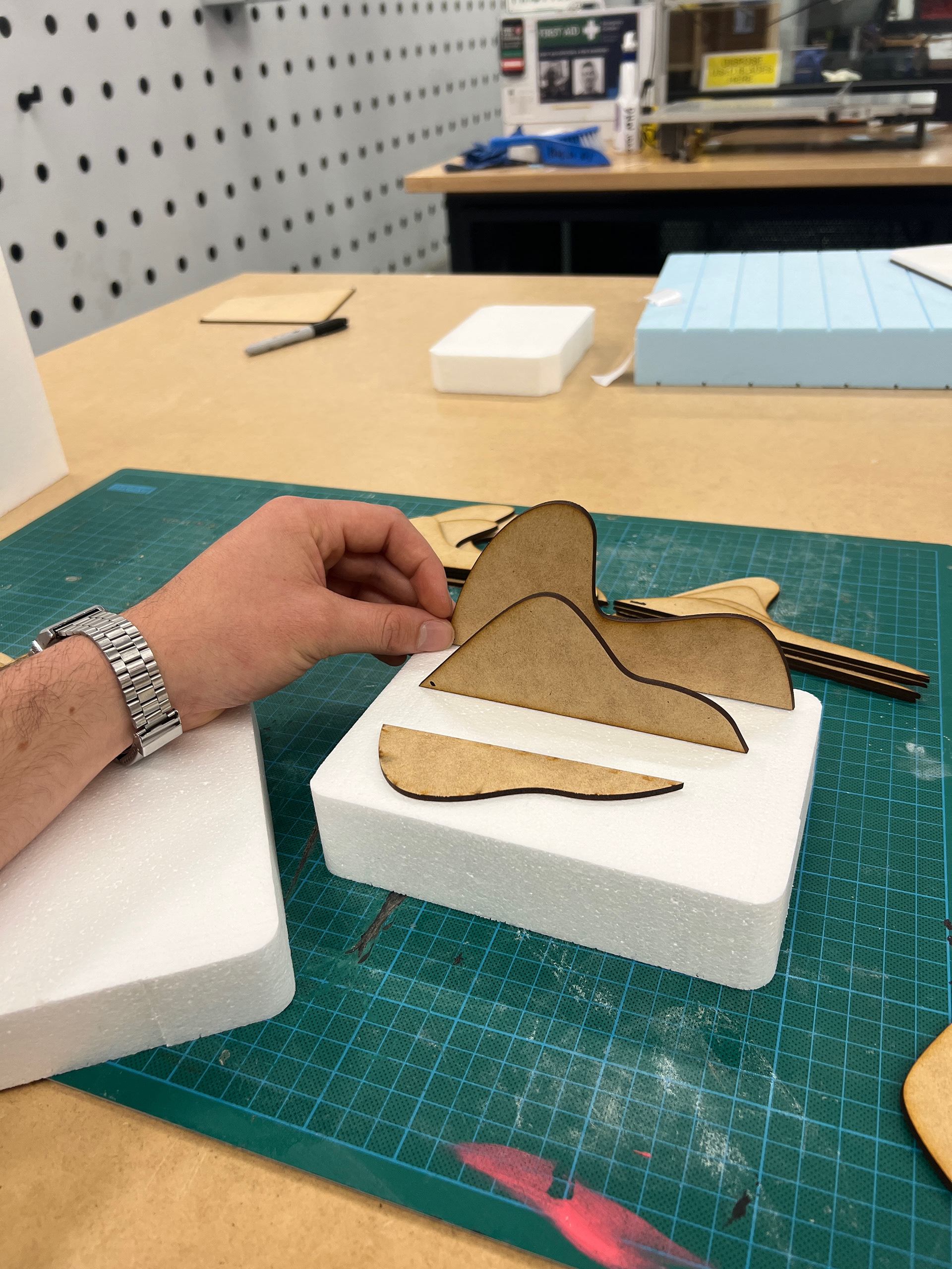 Testing form and dimensions of concept 1. Tools used: Laser-cutter, hot wire cutter