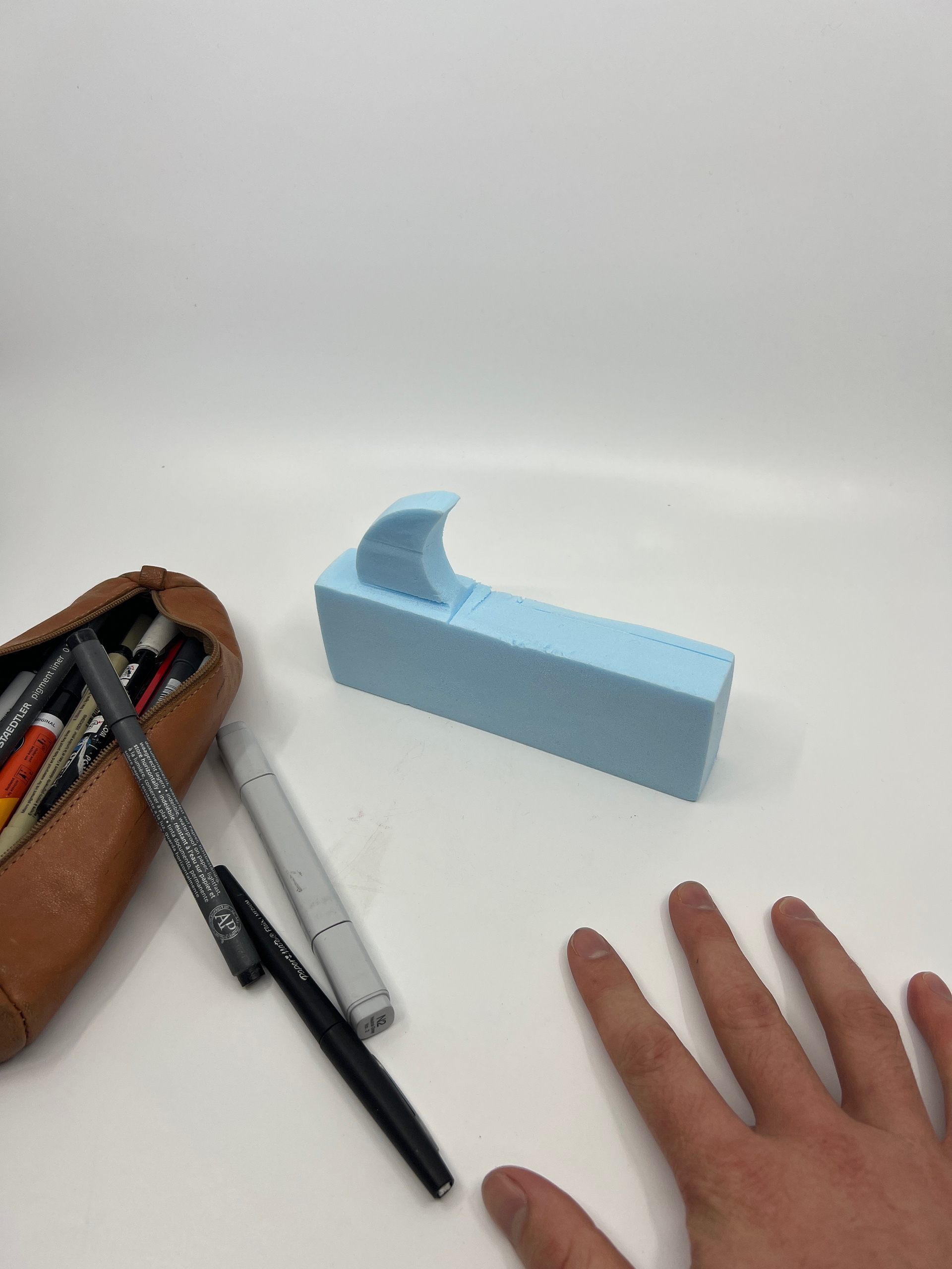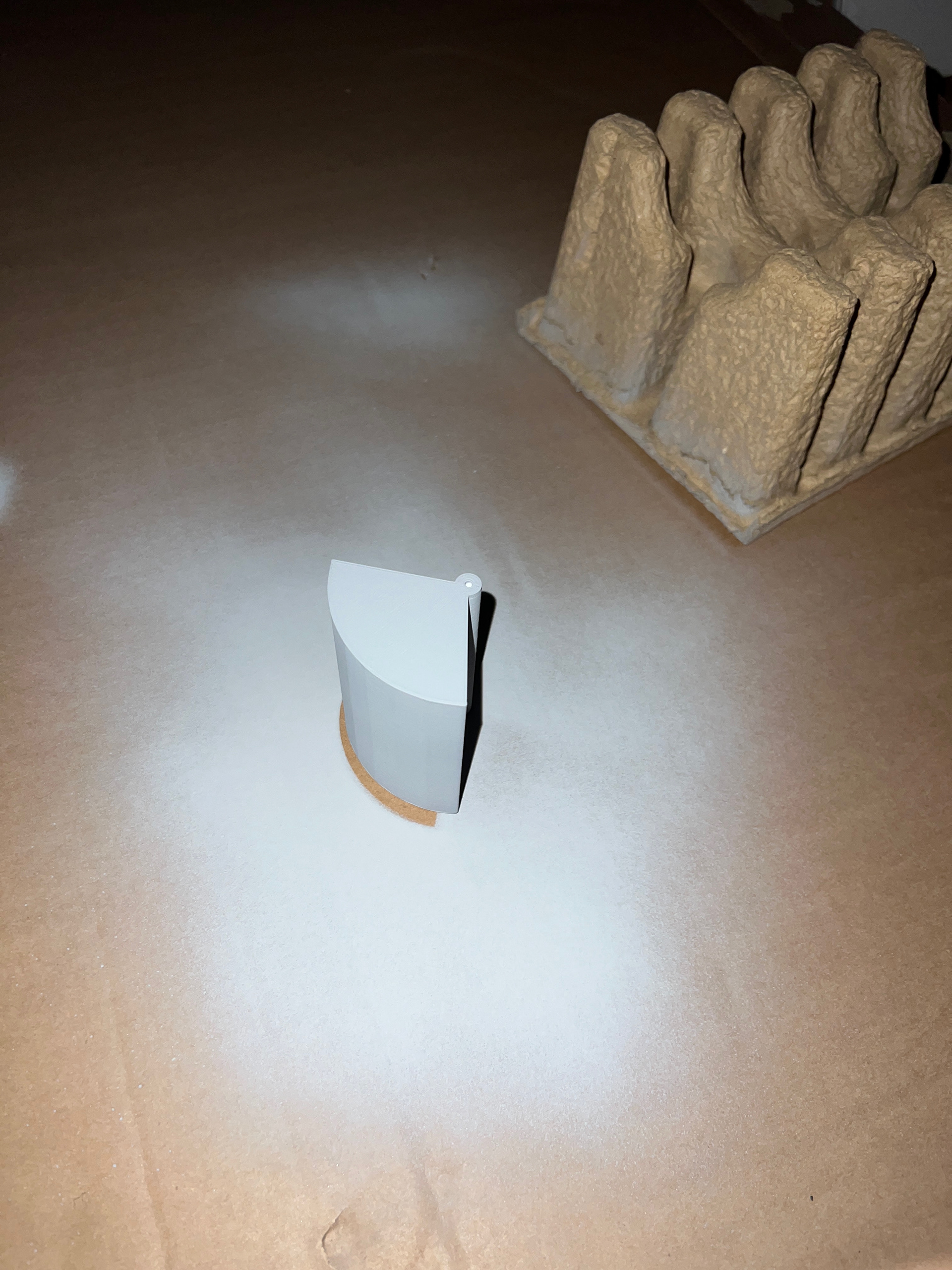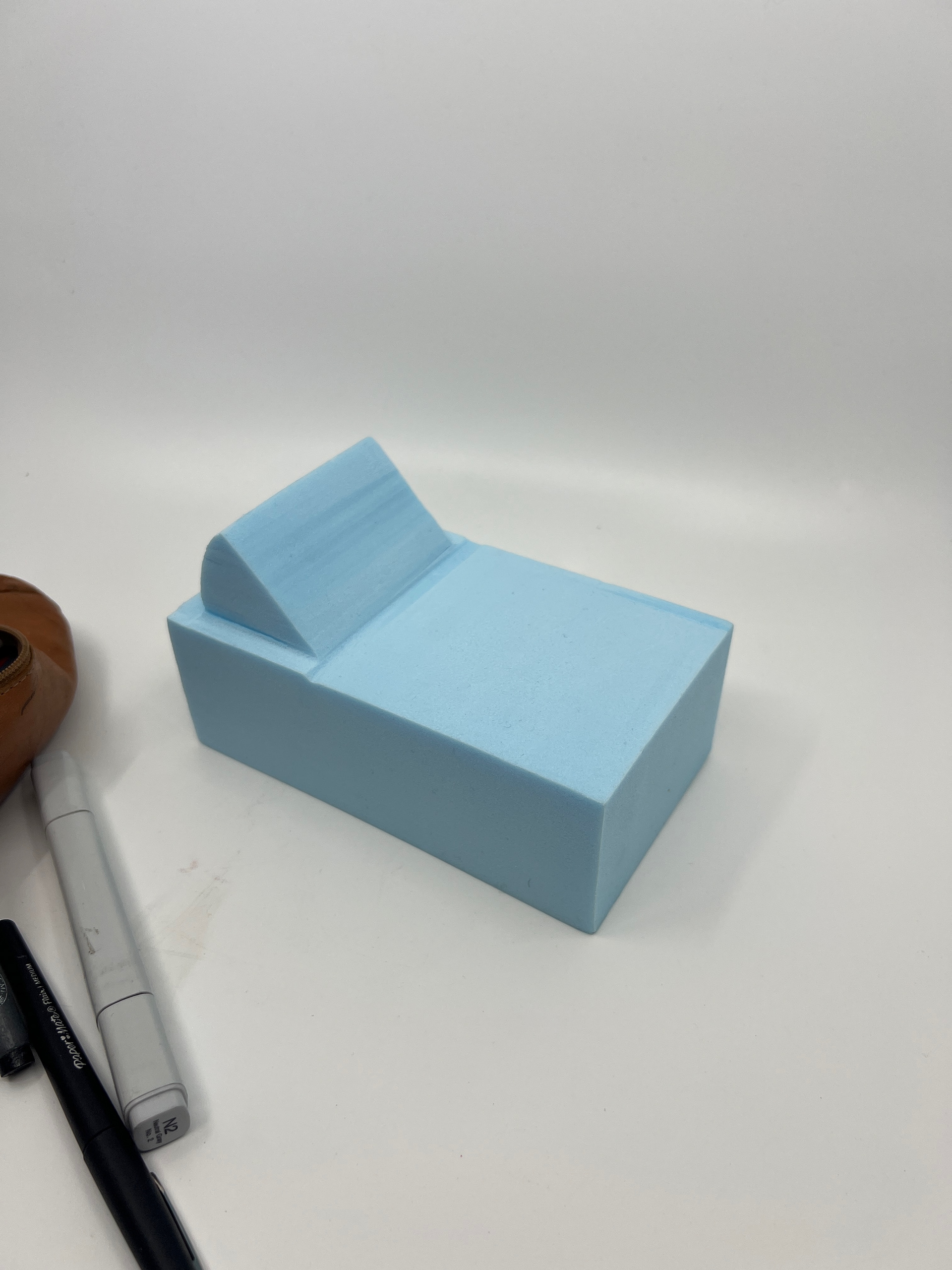 Testing the form and dimensions of concept 2. Tools used: Hot wire cutter, craft knife, sand-paper, double-sided tape