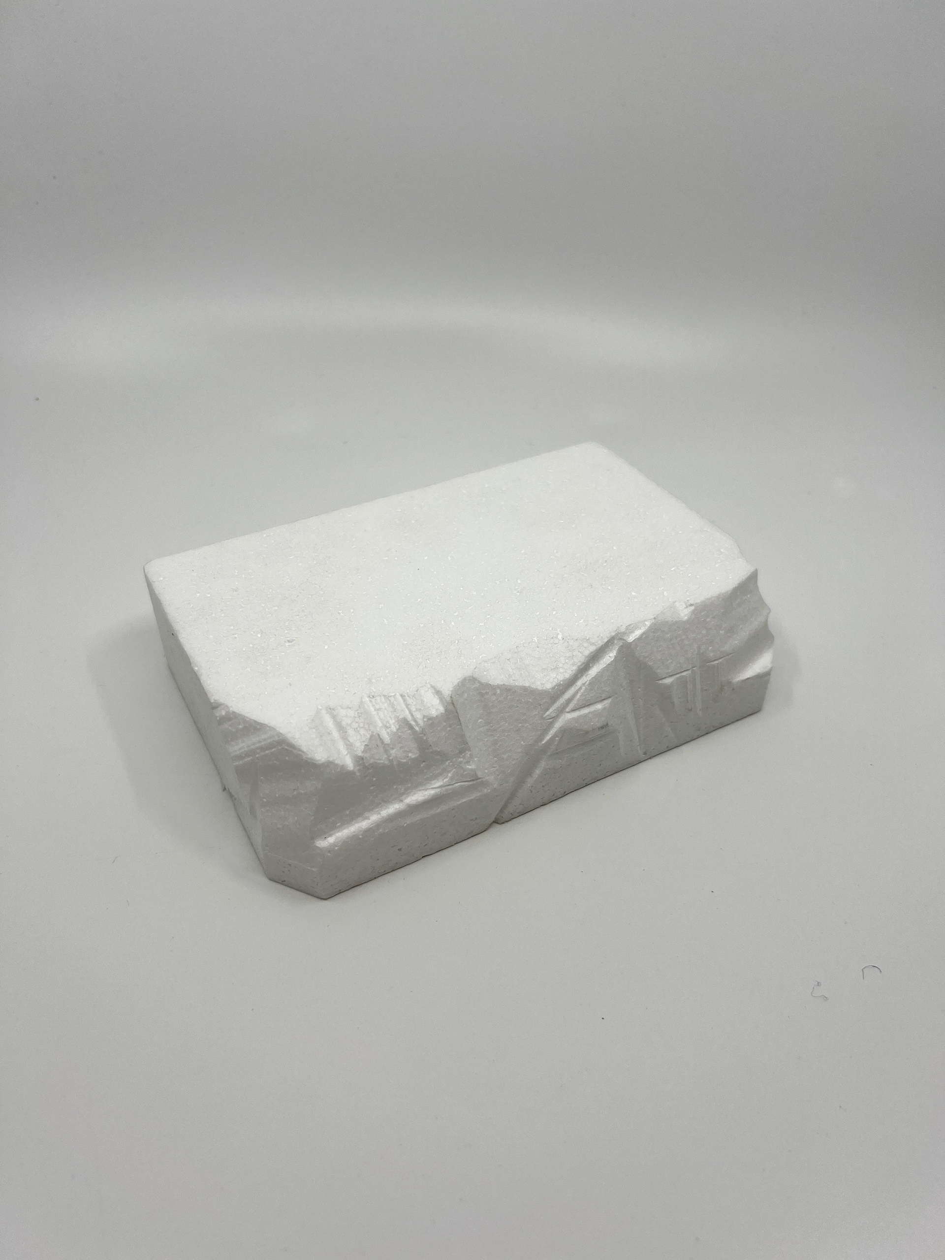 Testing form and dimensions of concept 3. Tools used: Hot wire cutter, craft knife, sand-paper, double-sided tape.